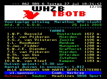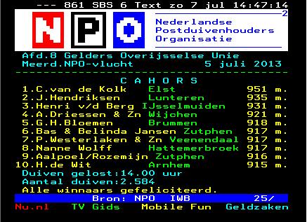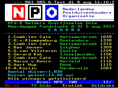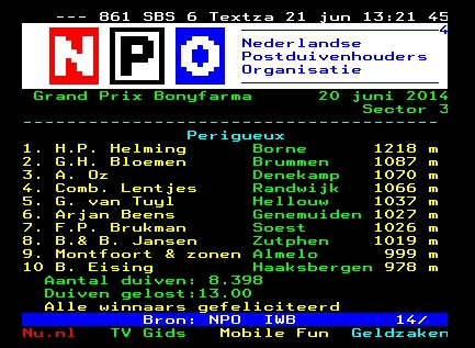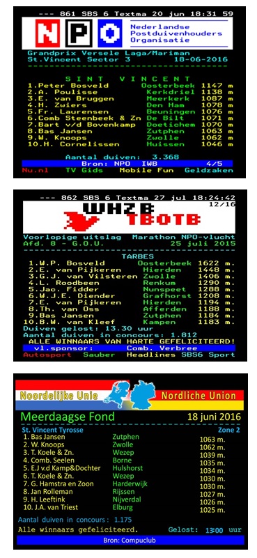 prijswinnaars en 2 verschillende teletekst duiven.