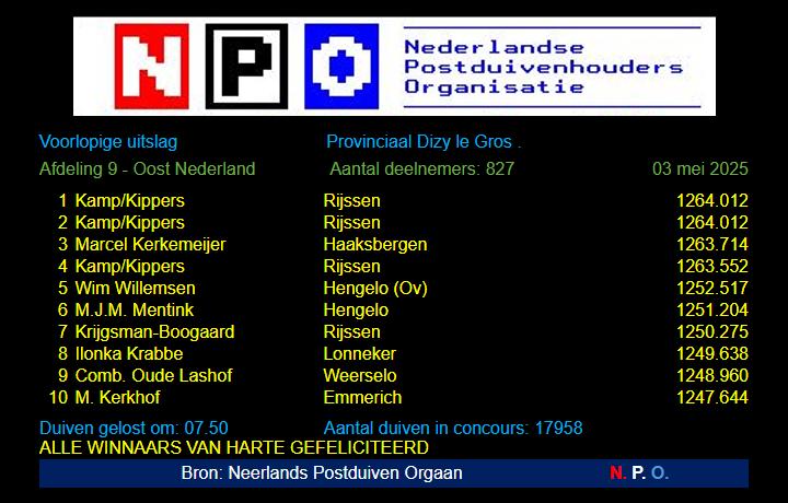 in afd 8 GOU een 9e NPO melun tegen 3562 duiven.